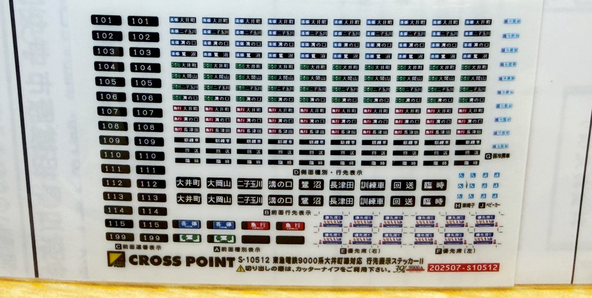 クロスポイント 東急電鉄9000系 (大井町線 ・赤帯復刻編成・9001編成タイプ)、繼GM製品之後,樣品已抵達!由於流用2次車,因此為タイプ(type)商品,但收錄了HM製品未收錄的行先顯示等,並附有貼紙。↓ 詳細請見 ↓