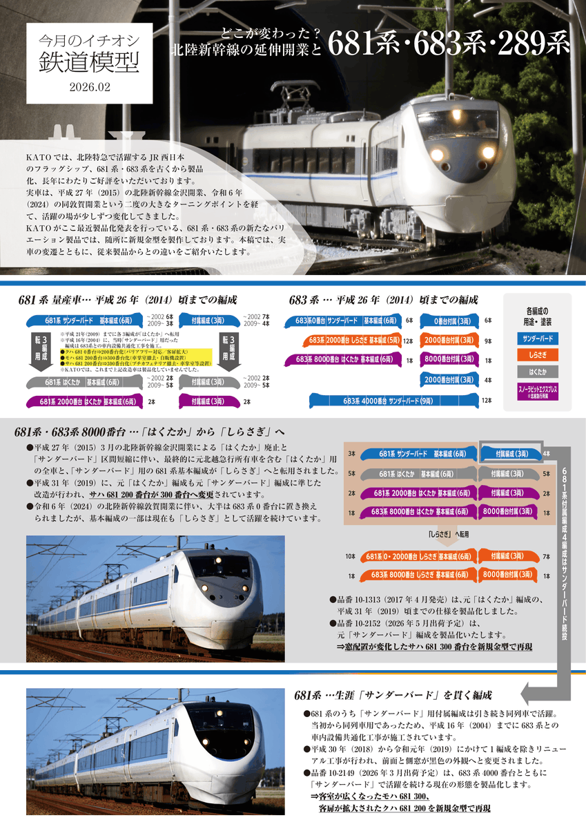 【西日本特急的基石】KATO 持續將 JR西日本 的 681・683系 系列模型化。作為曾在「雷鳥」等列車上活躍的 485系 的後繼車,率先投入北陸特急。其後經歷多次運用變更與改造,展現多元活躍。如今該系列幾乎擔當關西圈幾乎所有的電車特急班次,現在就為大家介紹!