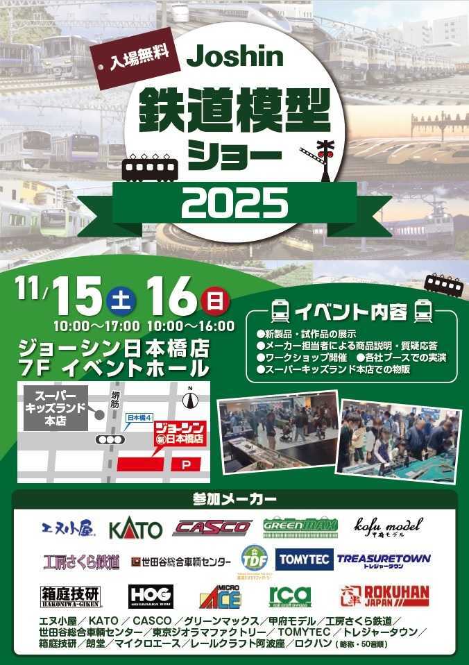 【會場已完成佈置】從明天起在Joshin日本橋店舉辦的「Joshin鐵道模型展」將有KATO參展!不只即將發售的36ぷらす3和3燈式號誌機,還會展示南海6000系等注目商品。此外還有駕駛體驗、情景模型實演等豐富內容,期待各位蒞臨參觀!