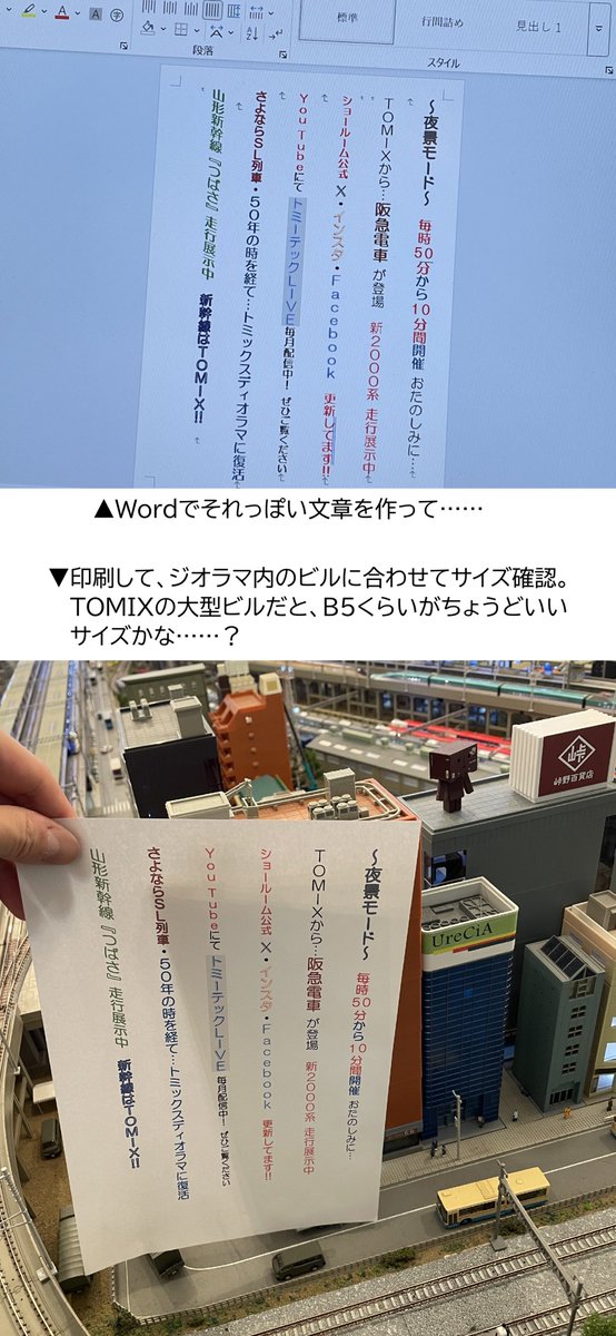 一旦完成的微縮情景……特別是固定式的情景,要替景觀增添變化其實不太容易。不過,像這樣的裝飾就能輕鬆替換呢❗️別想得太複雜,配合當下的時節來佈置,長長久久地享受吧✨TOMIX拍鐵